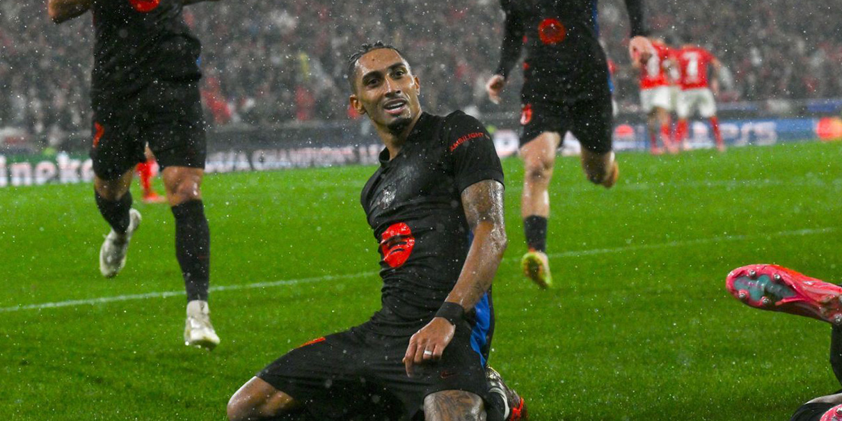 A pesar de la inferioridad numérica, el Barcelona mostró un gran espíritu de lucha y no se echó atrás. El equipo aguantó las embestidas del Benfica durante la primera mitad, y al minuto 61, llegó la recompensa. Raphinha aprovechó un error defensivo del Benfica para anotar el único gol del partido, tras un pase largo que lo dejó frente al portero local. El gol dio tranquilidad al Barcelona, pero el equipo seguía con la necesidad de mantener el orden defensivo ante el empuje de los portugueses.