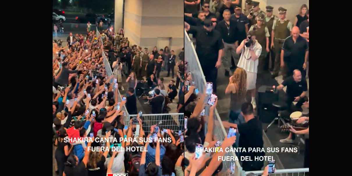 La tarde de este lunes, la cantante Shakira salió a las puertas del hotel Mandarín en Santiago para convivir con sus fans, quienes desde muy temprano se dieron cita en la entrada del lugar. Además de saludar, tomarse fotos y firmar autógrafos, la barranquillera sorprendió con un pequeño concierto improvisado.