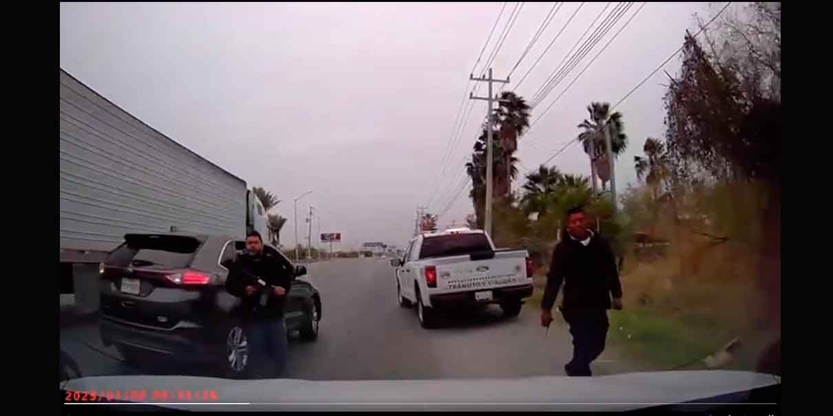 Un agente de Vialidady Tránsito en la entrada de nuevo Laredo Tamaulipas ignoró el llamado de auxilio de una familia que fue amenazada por hombres fuertemente armados, todo quedó expuesto en un video grabado desde el auto de las víctimas.