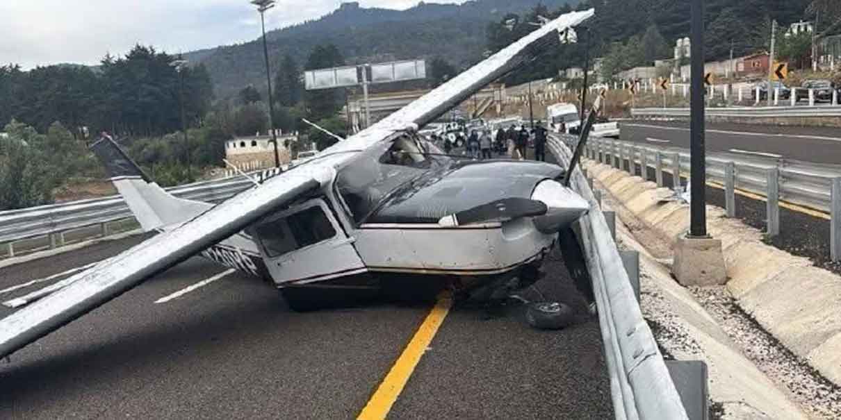 Una avioneta realizó un aterrizaje de emergencia sobre los carriles de la nueva carretera Real del Monte-Huasca, en Hidalgo, tras presentar fallas durante el vuelo.