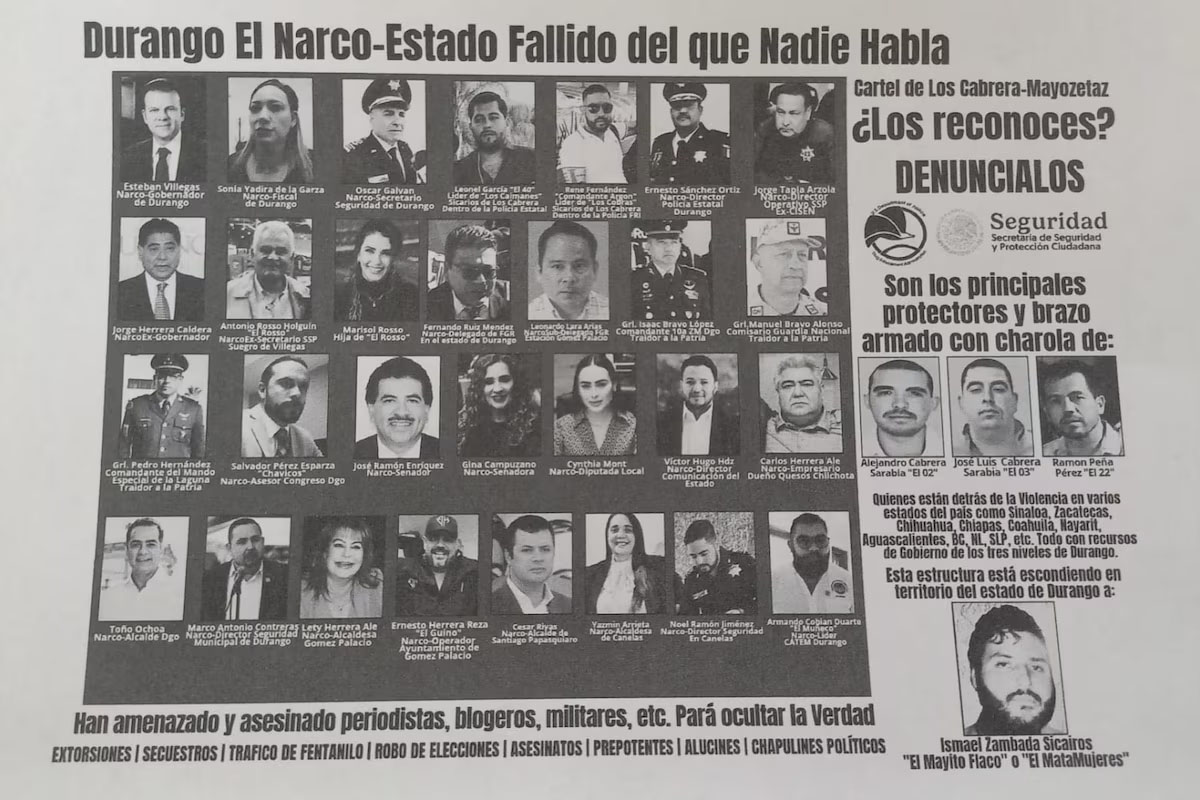 Días antes de la publicación de la supuesta recompensa, el pasado 25 de enero, presuntos integrantes de Los Chapitos arrojaron volantes desde una avioneta en localidades serranas de Durango, en los que acusan a 29 figuras públicas de colaborar con "El Mayito Flaco" y Los Cabrera Sarabia. Los panfletos incluían fotografías y nombres de políticos, funcionarios y empresarios, señalándolos de brción enemiga dentro del Cártel de Sinaloa.