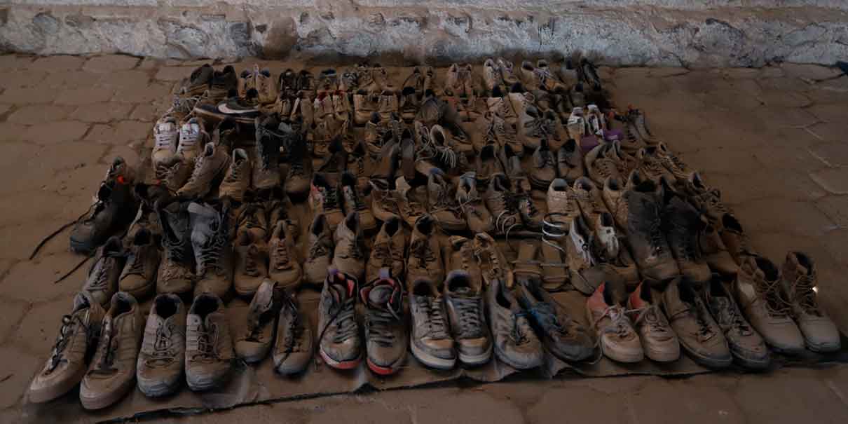 Auténtico campo de exterminio, el rancho también ha ofrecido un sendero de muerte, en el que además de los tristemente célebres 400 pares de tenis, también se han encontrado placas de titanio, dentaduras y fragmentos de huesos humanos.