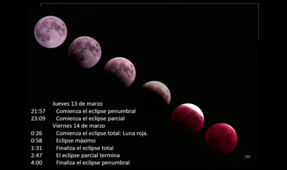 Desde cualquier punto de México, se podrá disfrutar a simple vista del eclipse lunar total que tendrá lugar en la noche del jueves 13 y la madrugada del viernes 14 de marzo.