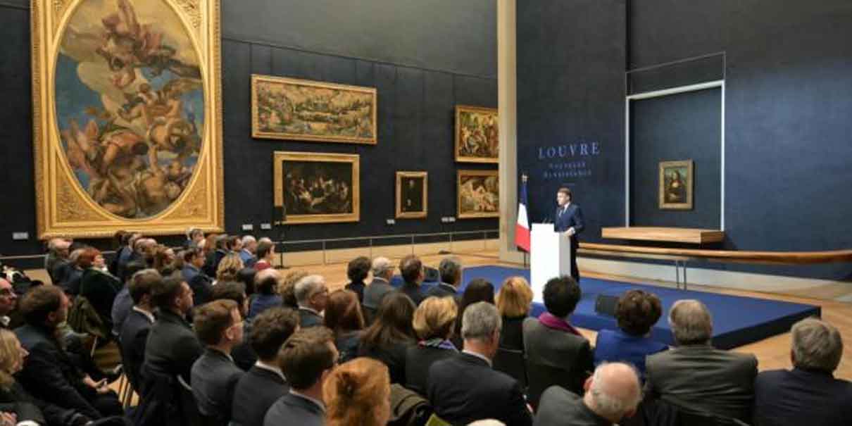El presidente de Francia, Emmanuel Macron, lo anunció frente a un grupo de dignatarios en el lugar donde se expone la obra maestra de Leonardo da Vinci.