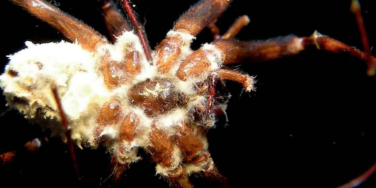 Este hongo blanco y esponjoso infecta sobre todo a la araña Metellina merianae, una especie que normalmente prefiere la oscuridad de las cuevas y otros espacios subterráneos. Lo más fascinante es su capacidad para alterar el comportamiento de sus víctimas, haciendo que las arañas infectadas abandonen sus escondites habituales y se desplacen a lugares expuestos en techos y paredes, un comportamiento totalmente opuesto a sus instintos naturales.